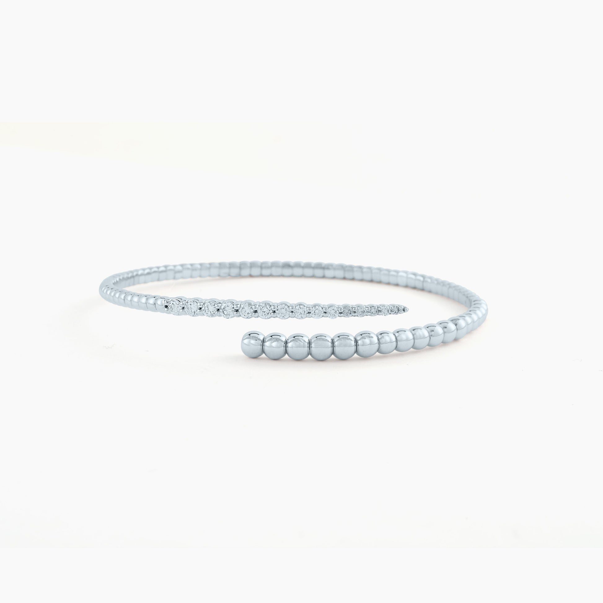- White Gold Beaded prong crossed bangle