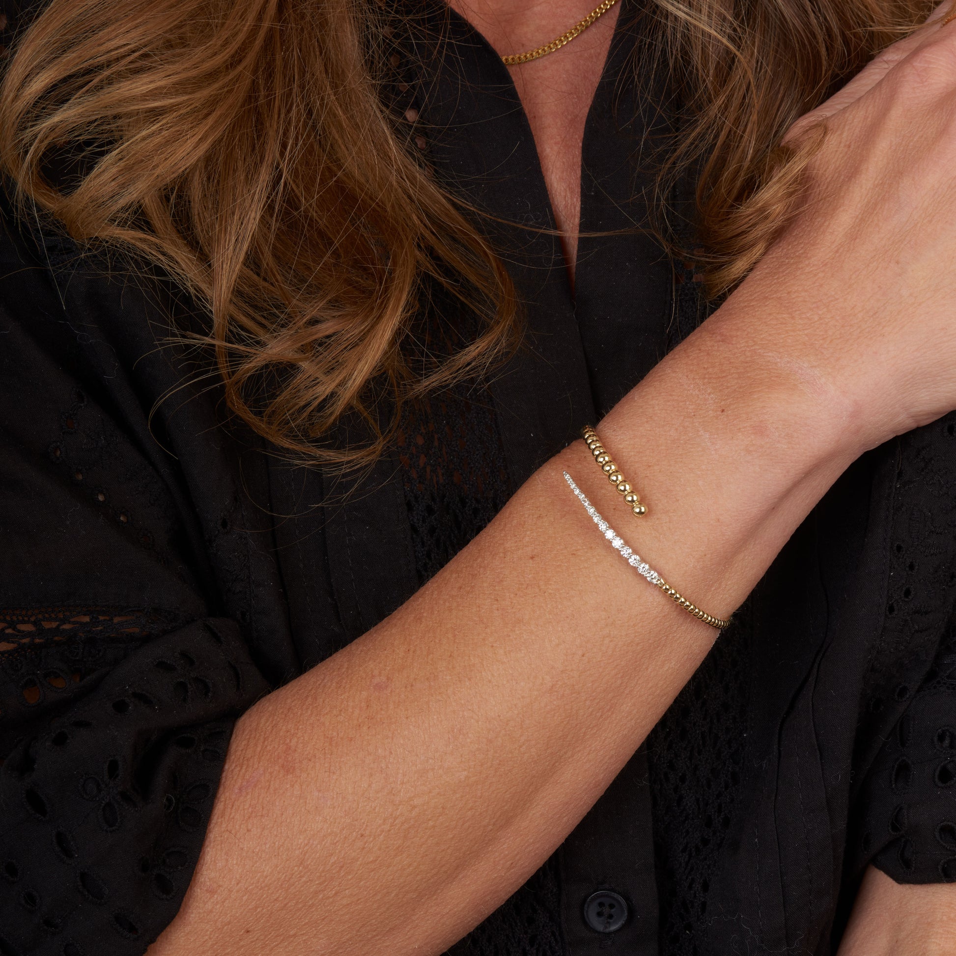 Crossed Diamond Bead Bangle