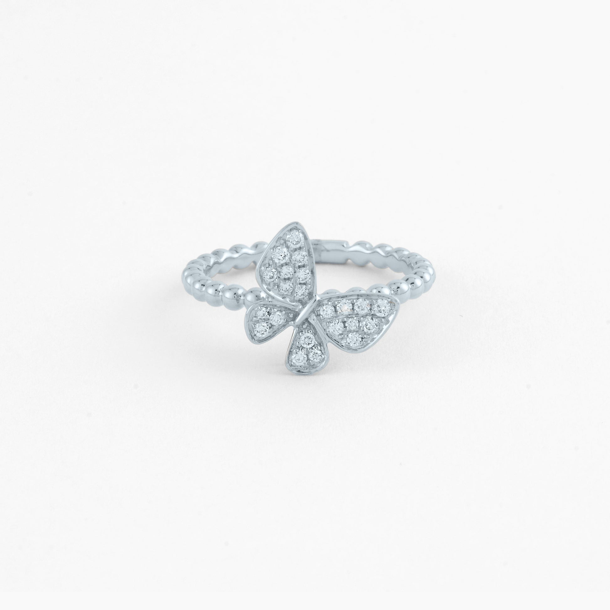 - White Gold Butterfly Bead Ring