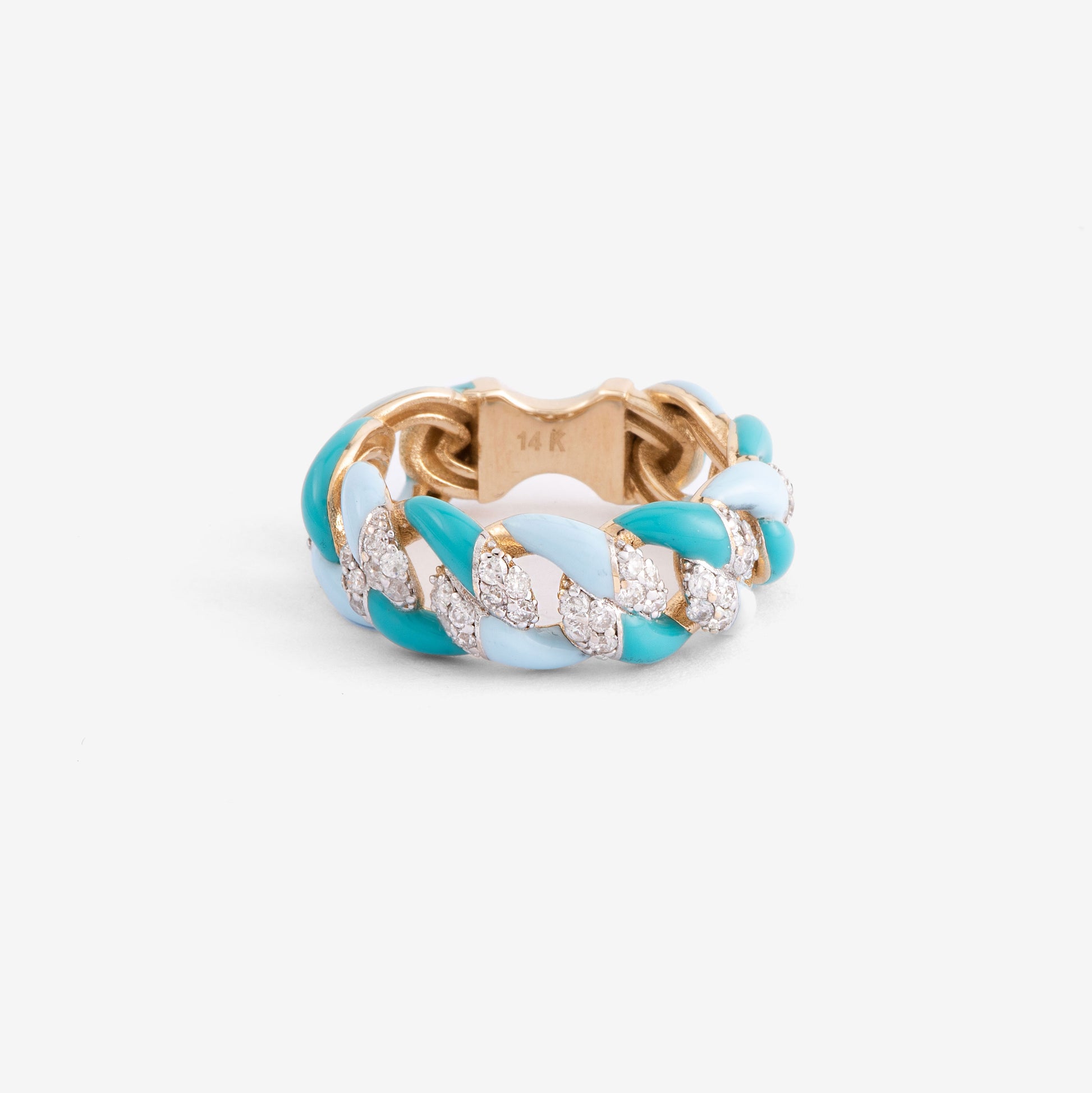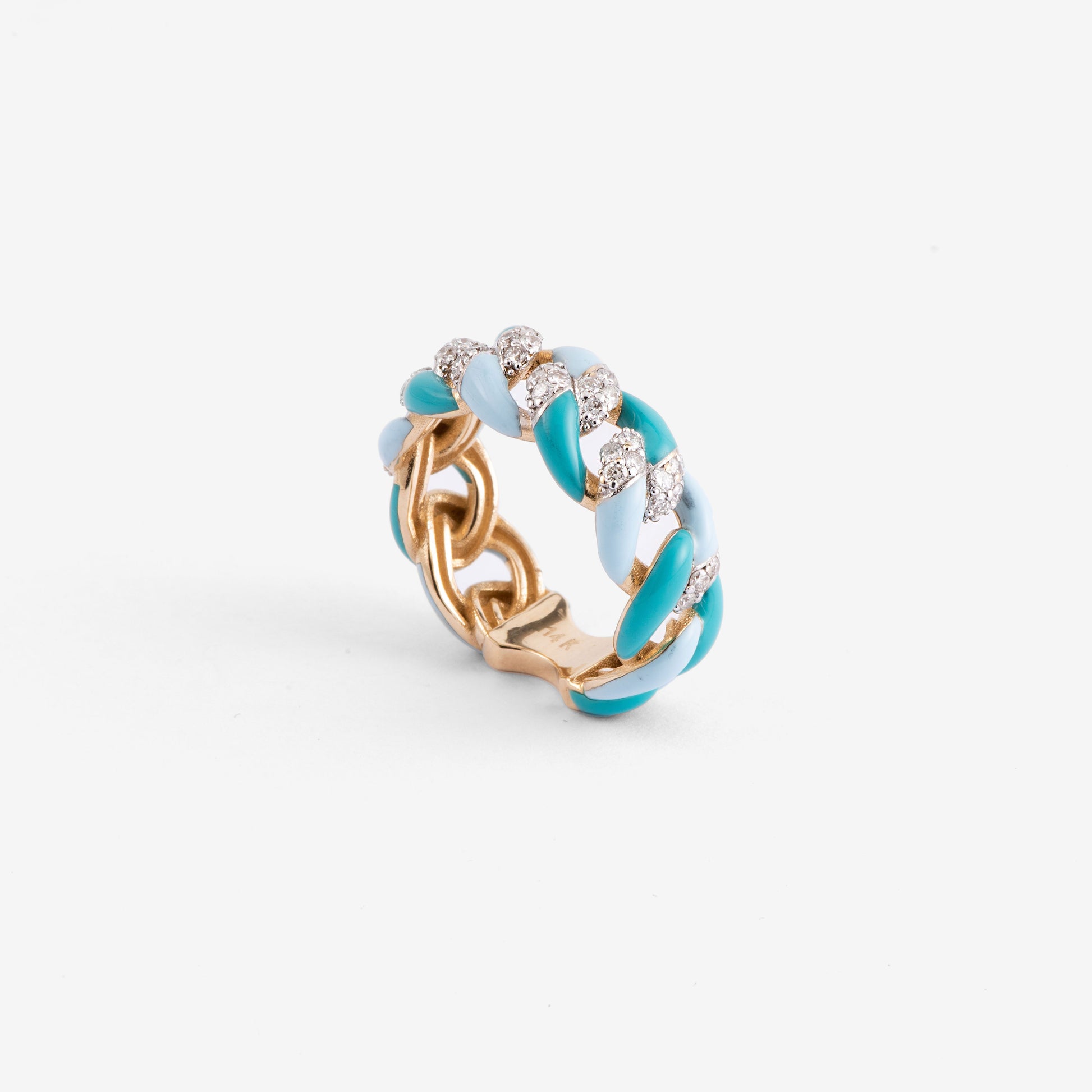 - Rose Gold Turquoise Enamel and Diamond Ring